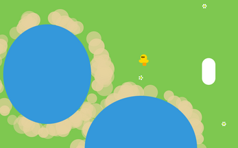 You are a little chicken on a nice meadow. There are apple trees and little ponds that are owned by a swan.